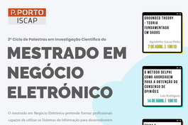 De 7 de abril a 12 de maio de 2021 decorrerá, através da plataforma ZOOM, o 3ºCiclo de Palestras em Investigação Científica do Mestrado em Negócio Eletrónico do ISCAP - Instituto Superior de Contabilidade e Administração do Porto.