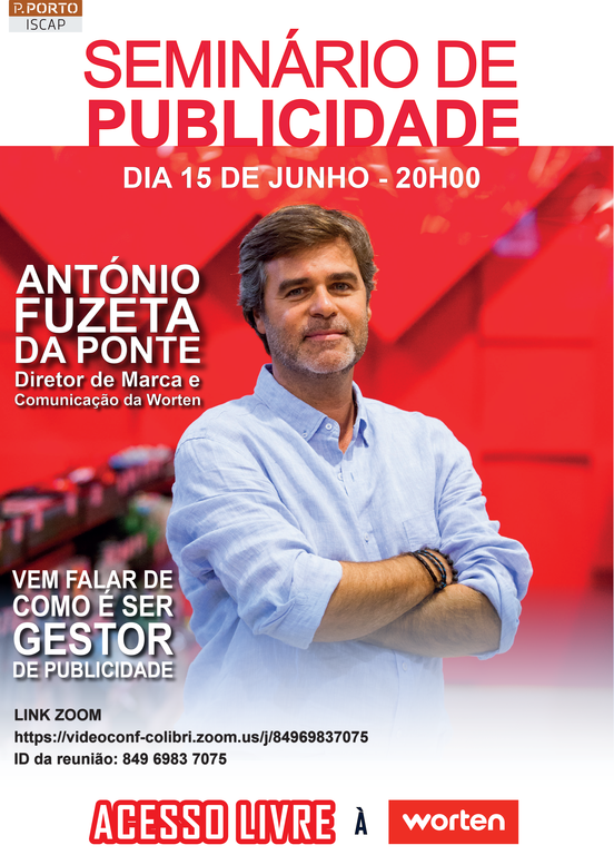 No próximo dia 15 de junho, realizar-se-á, pelas 20h00, um Seminário de Publicidade no qual António Fuzeta da Ponte vem falar de Como é Ser Gestor de Publicidade.