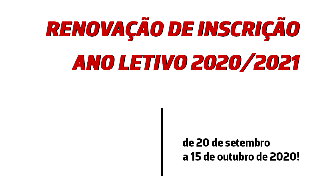 Informamos que a renovação de inscrição para o ano letivo 2020/21 decorre de 20 de setembro a 15 de outubro de 2020 e é realizada exclusivamente online em https://domus.ipp.pt/home/.