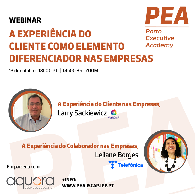 No próximo dia 13 de outubro, realizar-se-á, pelas 18h00, um webinar com o objetivo de apresentar o curso de curta duração "A Experiência do Cliente como Elemento Diferenciador nas Empresas".