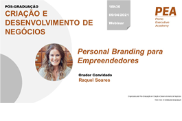 No próximo dia 09 de Abril, pelas 18h30, no âmbito do módulo de Gestão de Pessoas da Pós-graduação em Criação e Desenvolvimento de Negócios, irá decorrer o seminário “Personal Branding para Empreendedores” com Raquel Soares, consultora Personal Branding & Imagem Profissional, fundou a Love People, é gestora da Beautiful Branding Agency e criou a Day by Day Agenda.
