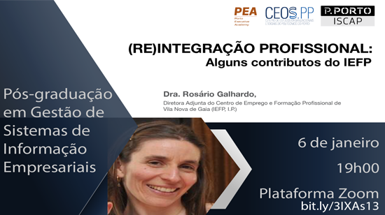 No próximo dia 6 de janeiro de 2022, realizar-se-á online, pelas 19h00, um seminário subordinado ao tema "(Re)integração profissional: alguns contributos do IEFP".
