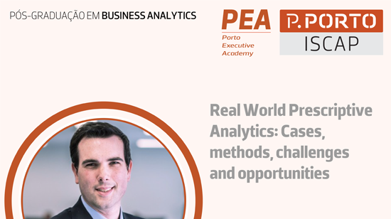 No próximo dia 17 de dezembro, pelas 19h00, realizar-se-á um seminário subordinado ao tema “Real World Prescriptive Analytics: Cases, methods, challenges and opportunities“, inserido no âmbito da Pós-graduação em Business Analytics, da Porto Executive Academy.