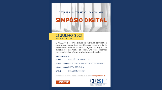 No âmbito da parceria académica entre o CEOS.PP e a Universidade da Corunha, no próximo dia 21 de julho, pelas 14h30 acolheremos um SIMPÓSIO DIGITAL.