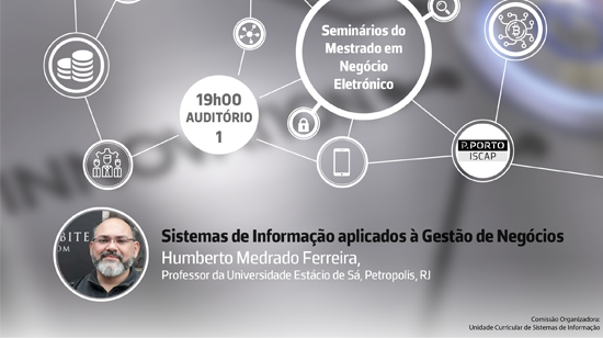 No âmbito da Unidade Curricular de Sistemas de Informação do Mestrado em Negócio Eletrónico, decorrerá, no próximo dia 22 de novembro, pelas 19h00, no Auditório 1 do ISCAP, um seminário subordinado ao tema "Sistemas de Informação aplicados à Gestão de Negócios".