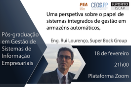 No próximo dia 18 de fevereiro, realizar-se-á, pelas 21h00, um seminário subordinado ao tema "Uma perspetiva sobre o papel de sistemas integrados de gestão em armazéns automáticos".