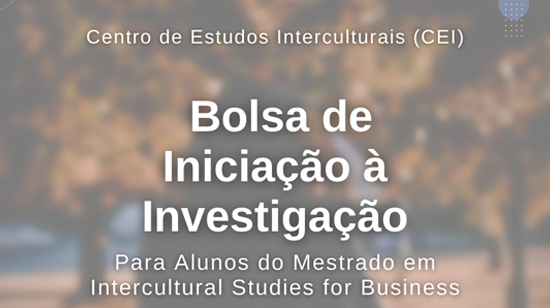 Encontra-se aberto concurso para a atribuição de uma Bolsa de Iniciação à Investigação (BII), a realizar por estudantes do 1º ou 2º ano do Mestrado em Intercultural Studies for Business, no Centro de Estudos Interculturais (CEI). Consultar:
