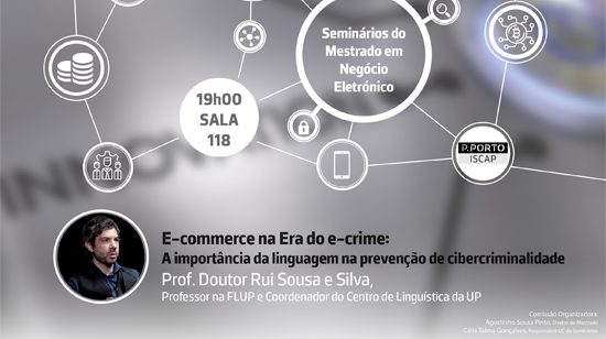 No âmbito da Unidade Curricular de Seminários do Mestrado em Negócio Eletrónico, decorrerá, no próximo dia 24 de março, pelas 19h00, um seminário subordinado ao tema "E-commerce na Era do e-crime: a importância da linguagem na prevenção de cibercriminalidade".