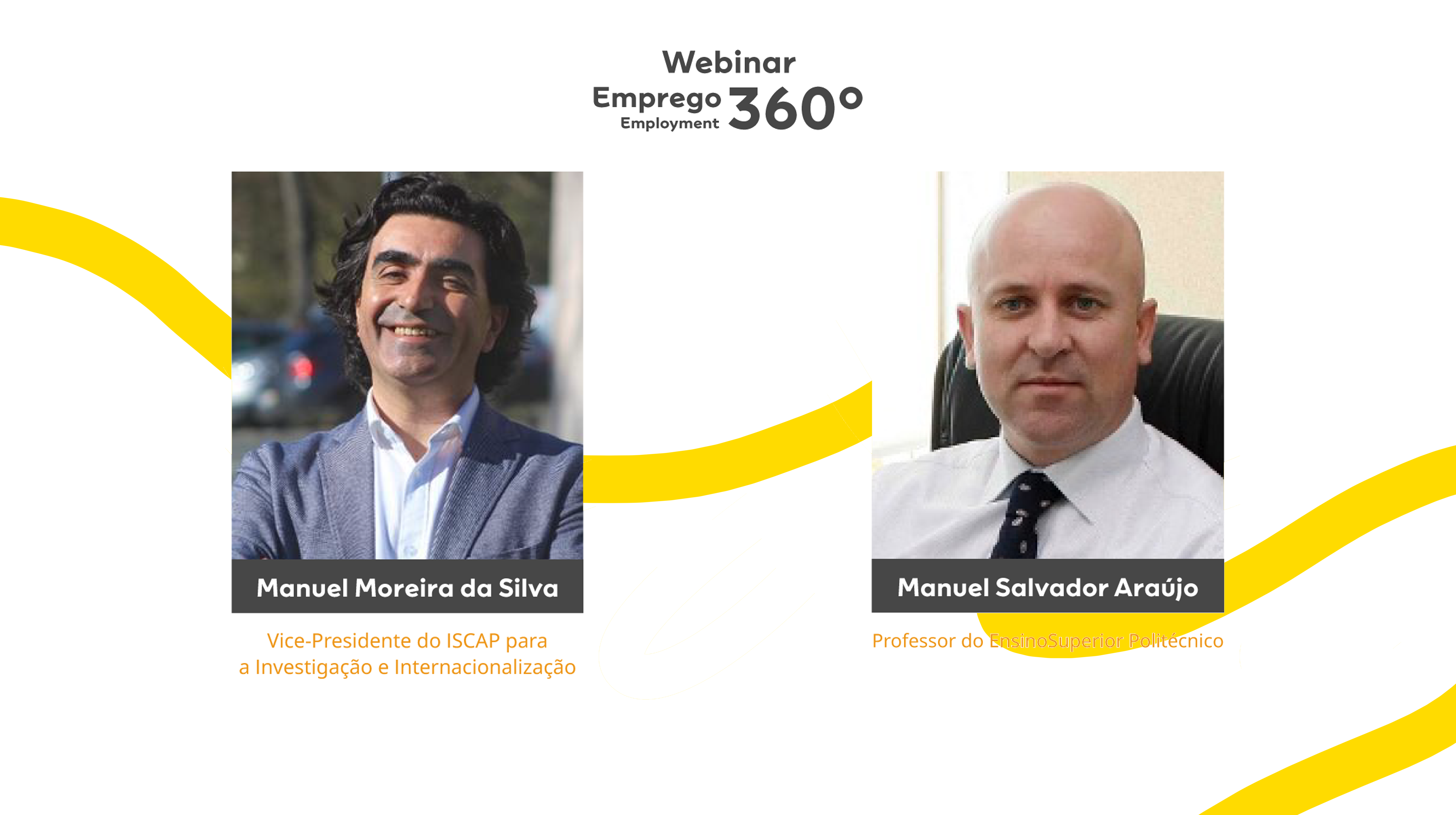 O ISCAP irá participar no Webinar Emprego 360.º, com o Workshop subordinado ao tema “ISCAP - Construir o Futuro, Hoje”, dia 04 de março de 2022, às 17h00. Os docentes do ISCAP, Manuel Moreira da Silva e Manuel Salvador, são os oradores convidados para esta sessão.
