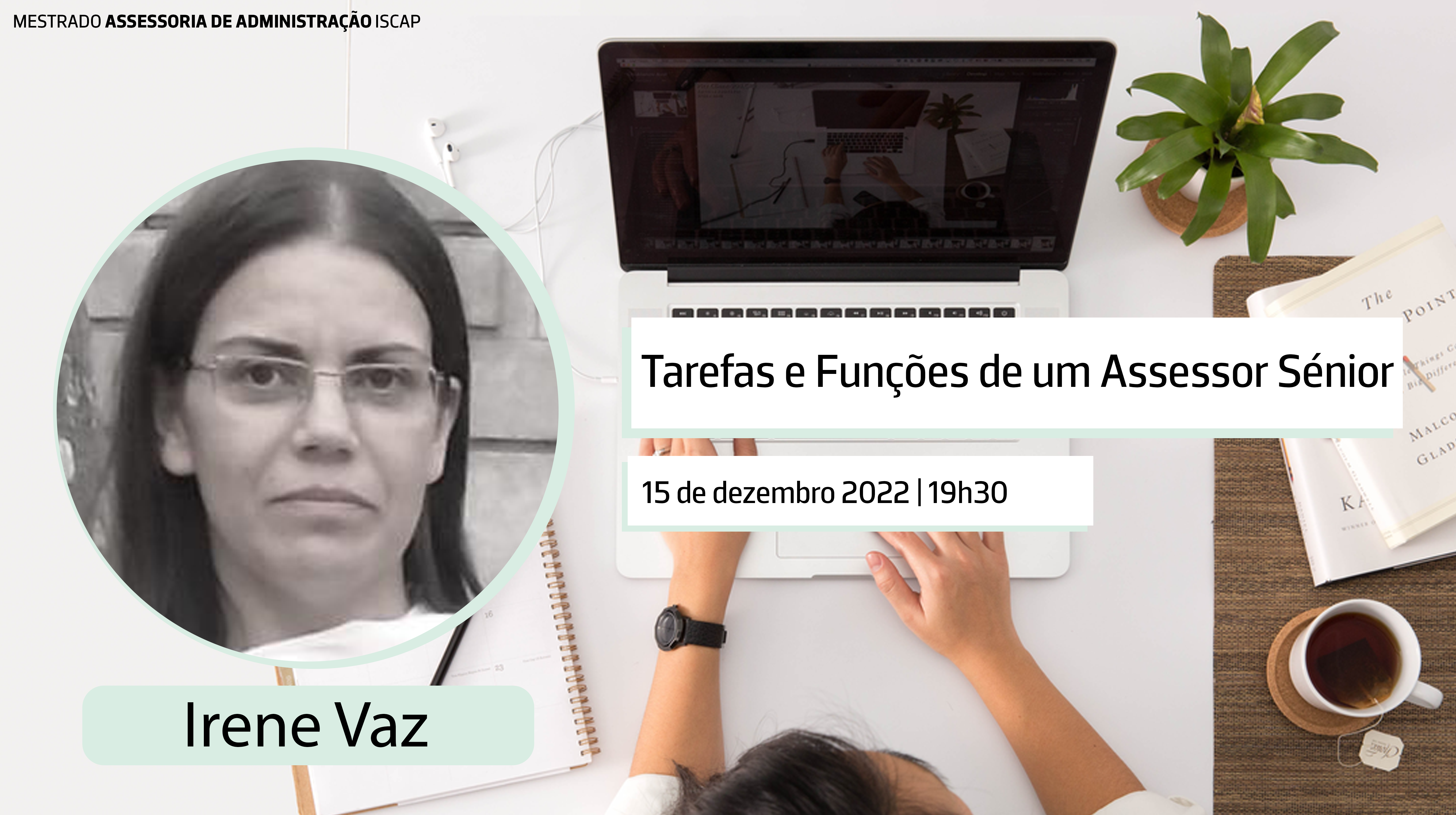 No próximo dia 15 de dezembro, com início às 19h30, realiza-se um seminário subordinado ao tema "Tarefas e Funções de um Assessor Sénior" inserido no Ciclo de Seminários do Mestrado em Assessoria de Administração.