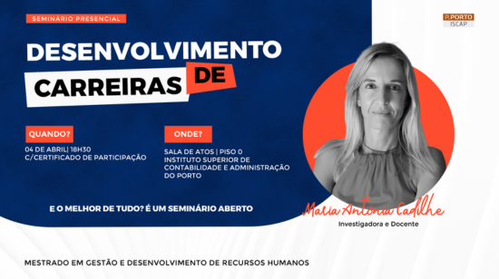 Reservem já o vosso lugar no seminário aberto sobre Desenvolvimento de Carreira, no âmbito do mestrado em Gestão e Desenvolvimento de Recursos Humanos.