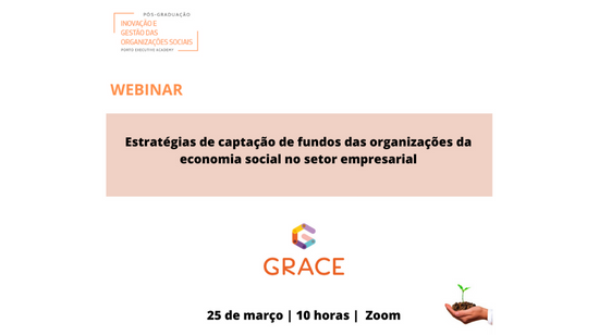 “Estratégias de captação de fundos das organizações da economia social no setor empresarial”. O webinar será realizado pelo GRACE, parceiro do curso.