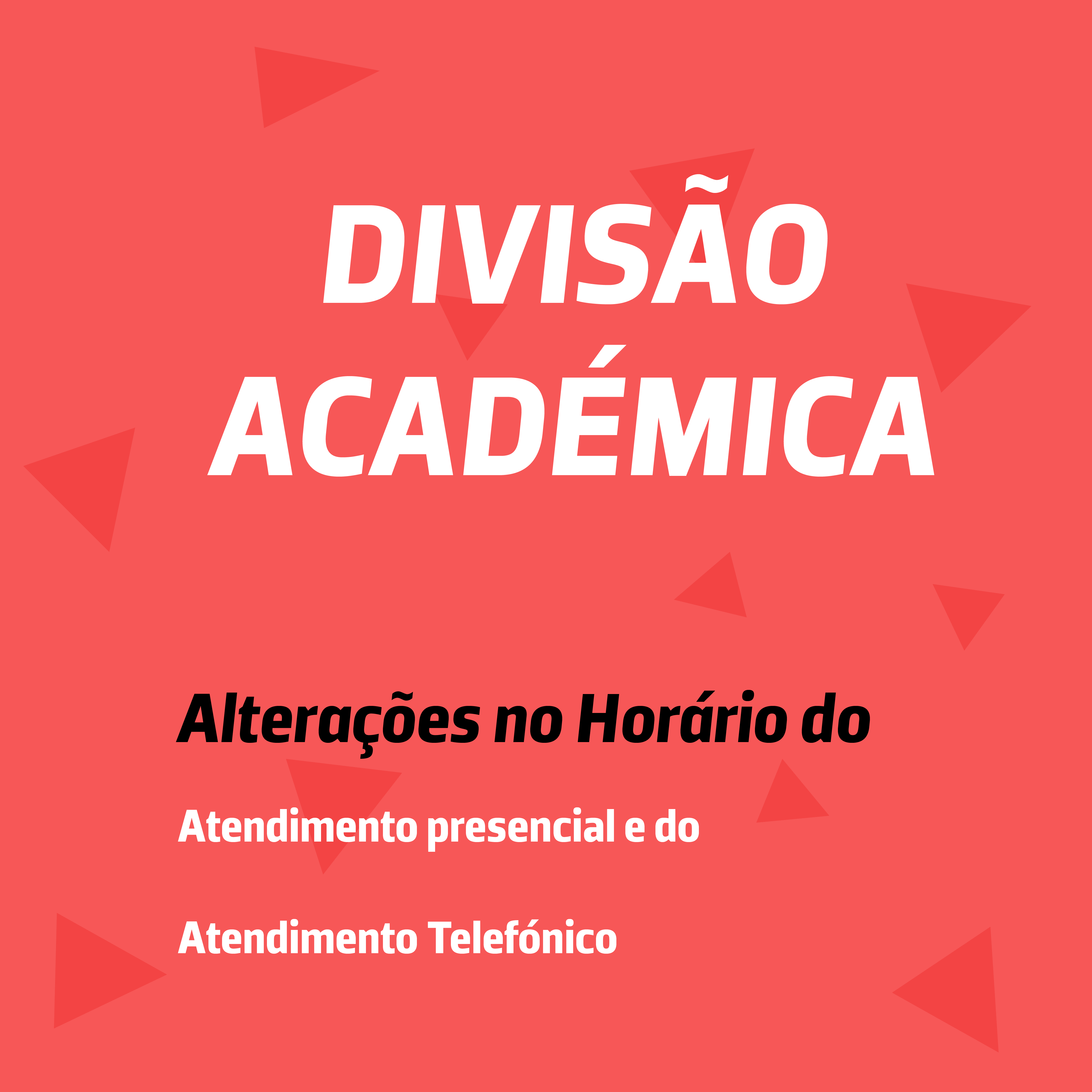 Informa-se que, a partir de 13 de maio de 2024, a Divisão Académica terá um novo horário de atendimento presencial e telefónico.