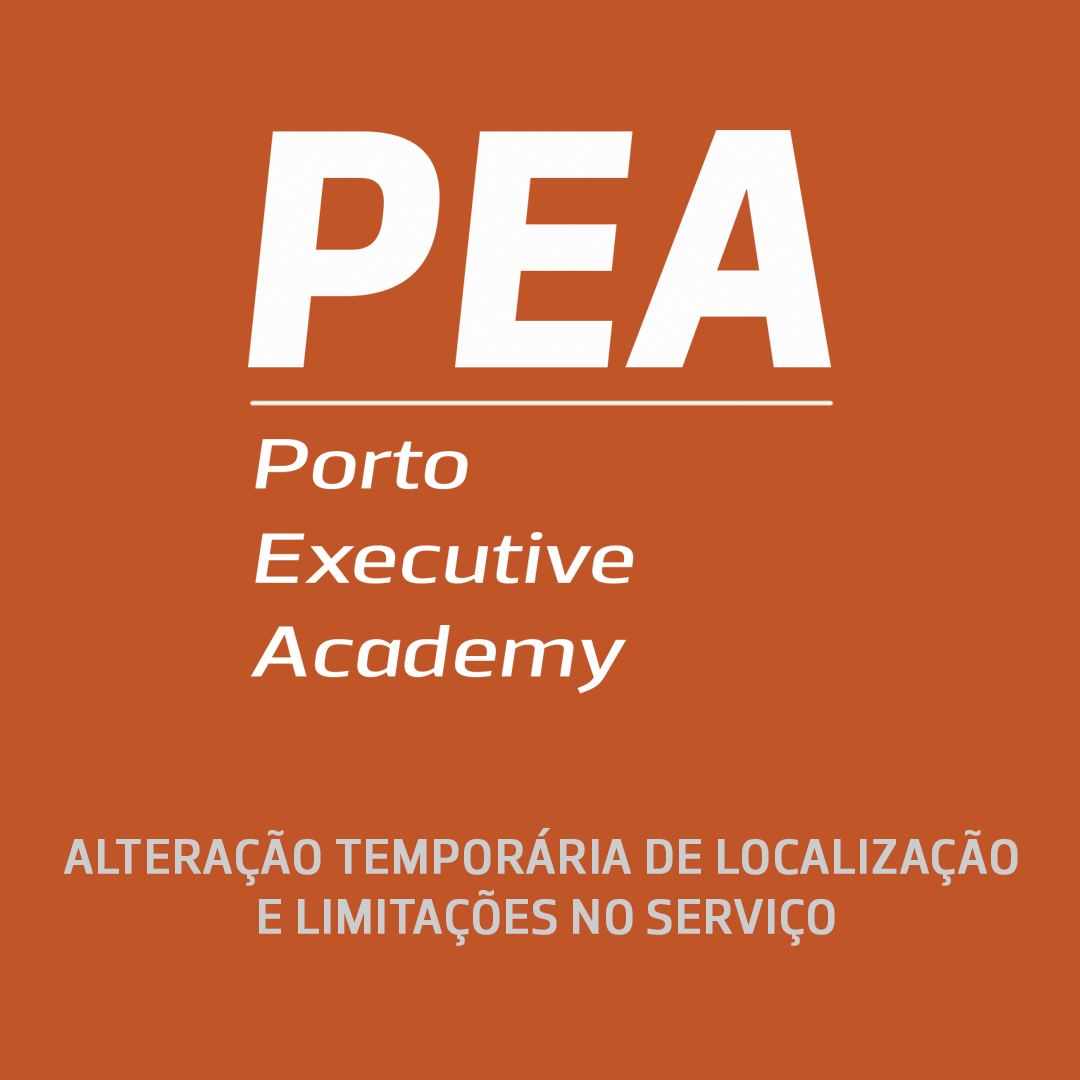Informamos que, por motivos operacionais, o serviço da Porto Executive Academy (PEA) encontra-se temporariamente deslocalizado para a Sala 228, localizada no Piso 2, no Bloco D.