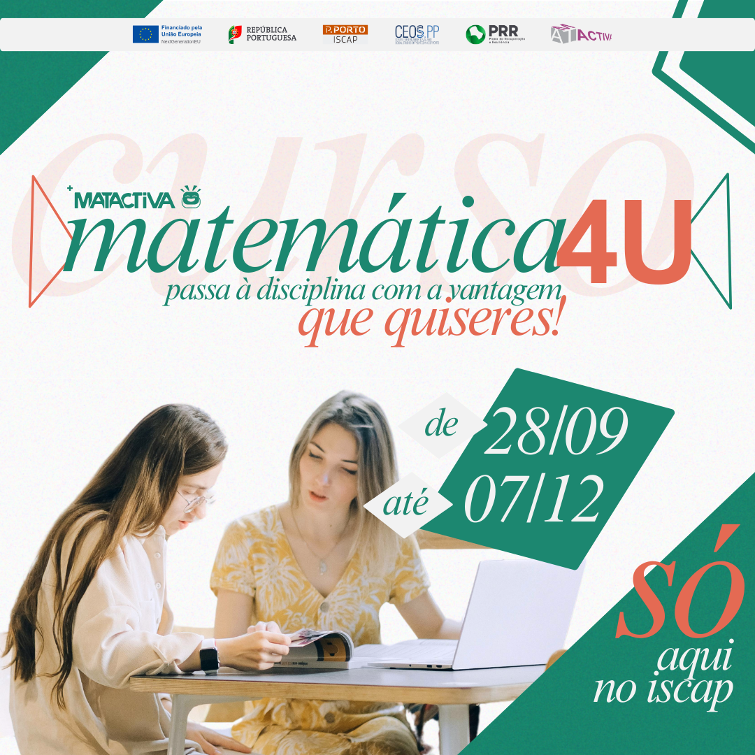 O principal foco deste curso é dotar os estudantes do ISCAP de competências fundamentais, para o sucesso académico e a futura integração no mercado profissional. Através de práticas pedagógicas inovadoras e metodologias ativas de aprendizagem, o curso visa reforçar a formação inicial dos alunos, cobrindo tópicos de Matemática que tenham sido identificados como lacunas na formação de base. Este complemento permitirá um melhor acompanhamento nas unidades curriculares da área de Matemática, essenciais para diversos cursos do ISCAP.