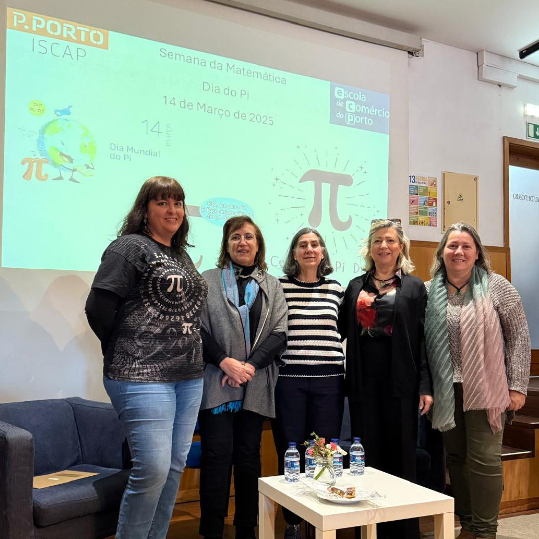No dia 14 de março de 2025, as docentes do ISCAP Isabel Vieira, Cristina Lopes, Cristina Torres e Lurdes Babo marcaram presença na Escola de Comércio do Porto, no âmbito das comemorações do Dia do Pi, com o objetivo de destacar a importância da Matemática no mundo atual.