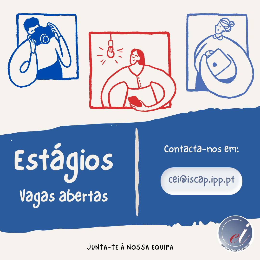 O Centro de Estudos Interculturais (CEI) do ISCAP volta a abrir vagas para estágios de Licenciatura e Mestrado! Esta é uma oportunidade única para os estudantes de qualquer Licenciatura ou Mestrado do ISCAP que desejam aprofundar os seus conhecimentos e competências num ambiente de trabalho dinâmico, descontraído e ligado à investigação intercultural.