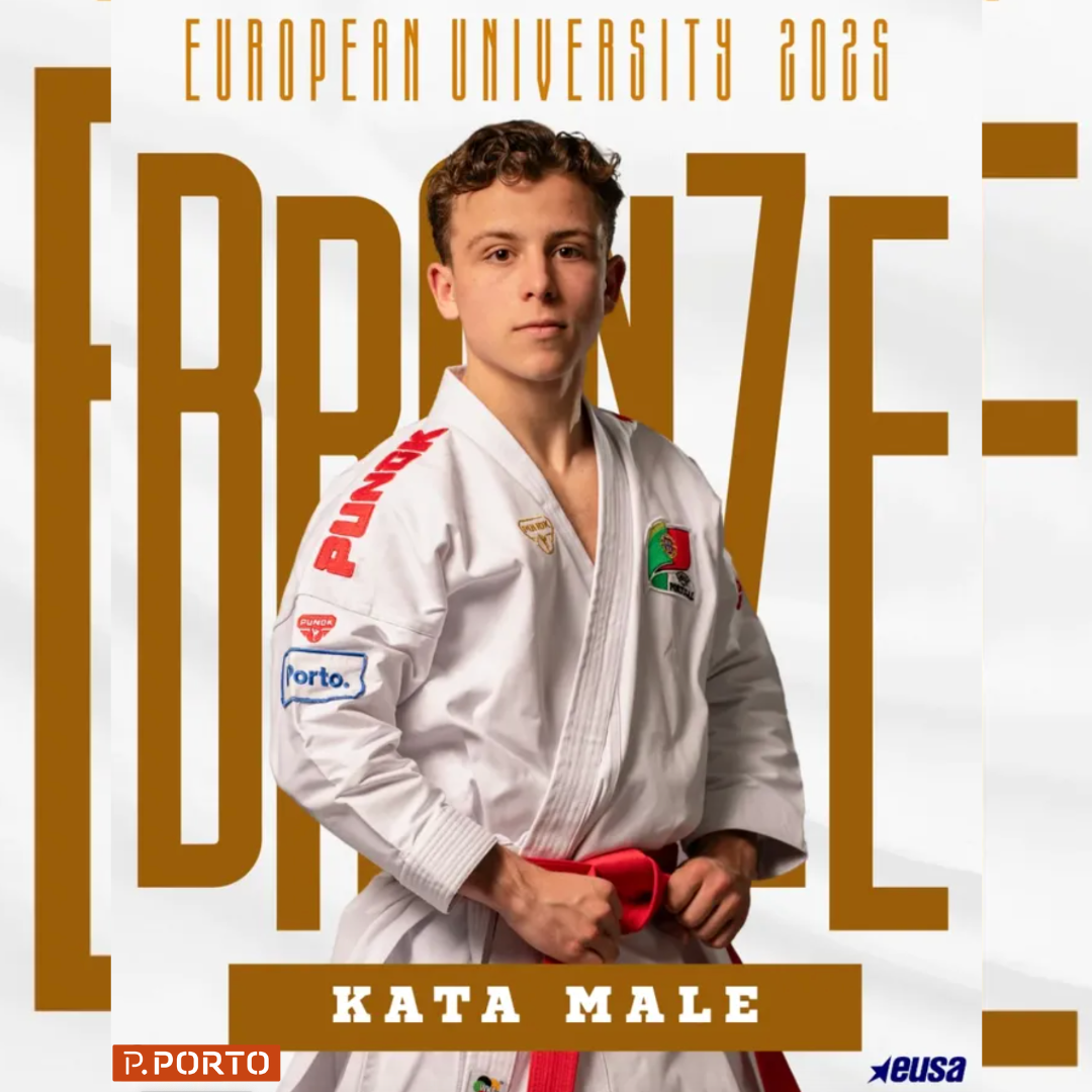 O João Vieira, estudante da Licenciatura em Comércio Internacional no ISCAP, conquistou a medalha de bronze em karaté nos EUSA Combat Games 2025, em Varsóvia, na Polónia, no passado dia 23 de agosto de 2025, representando o Politécnico do Porto.
