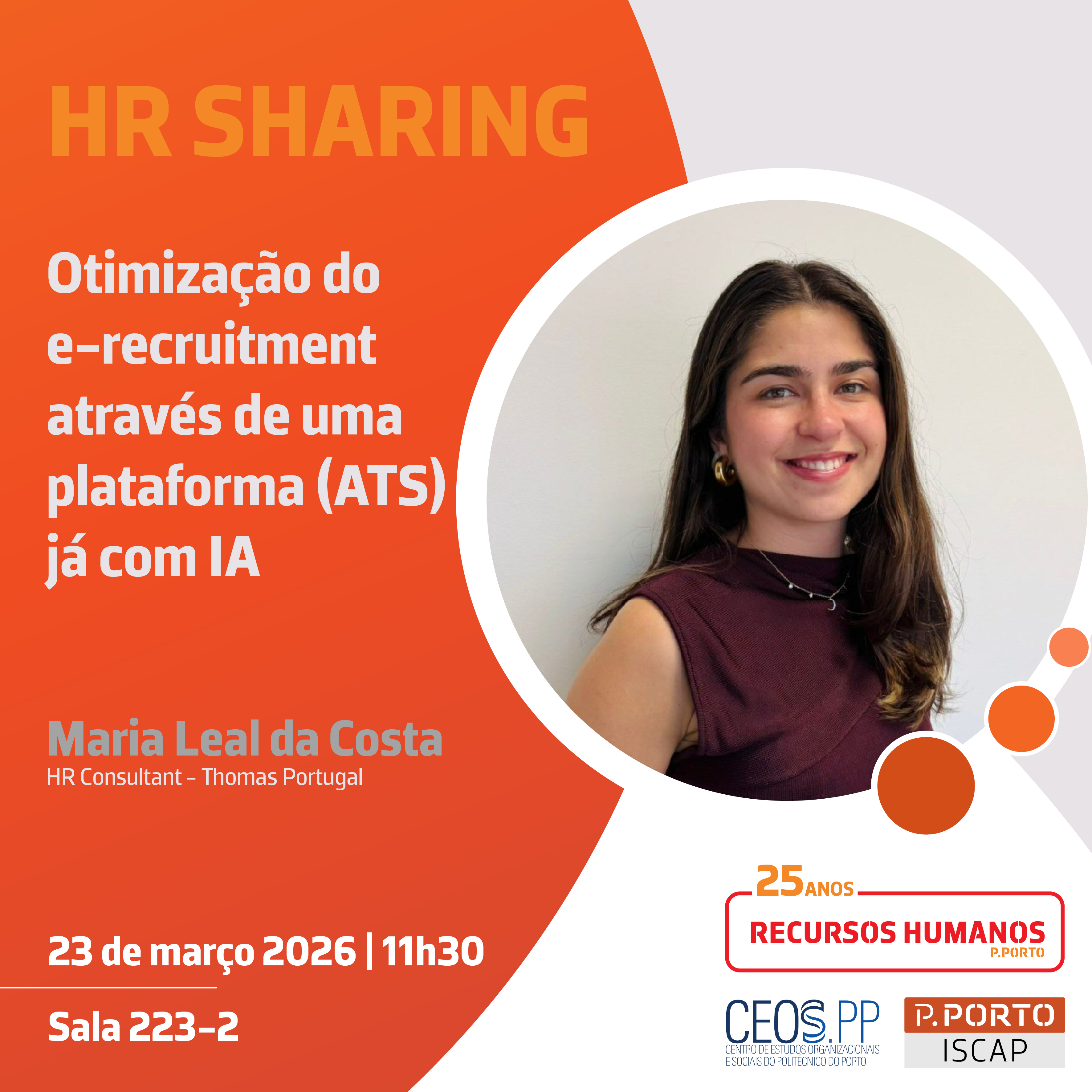No próximo dia 23 de março de 2026, às 11h30, na sala 223-2, irá decorrer um seminário no âmbito do HR Sharing com o tema "Otimização do e-recruitment através de uma plataforma (ATS) já com IA".