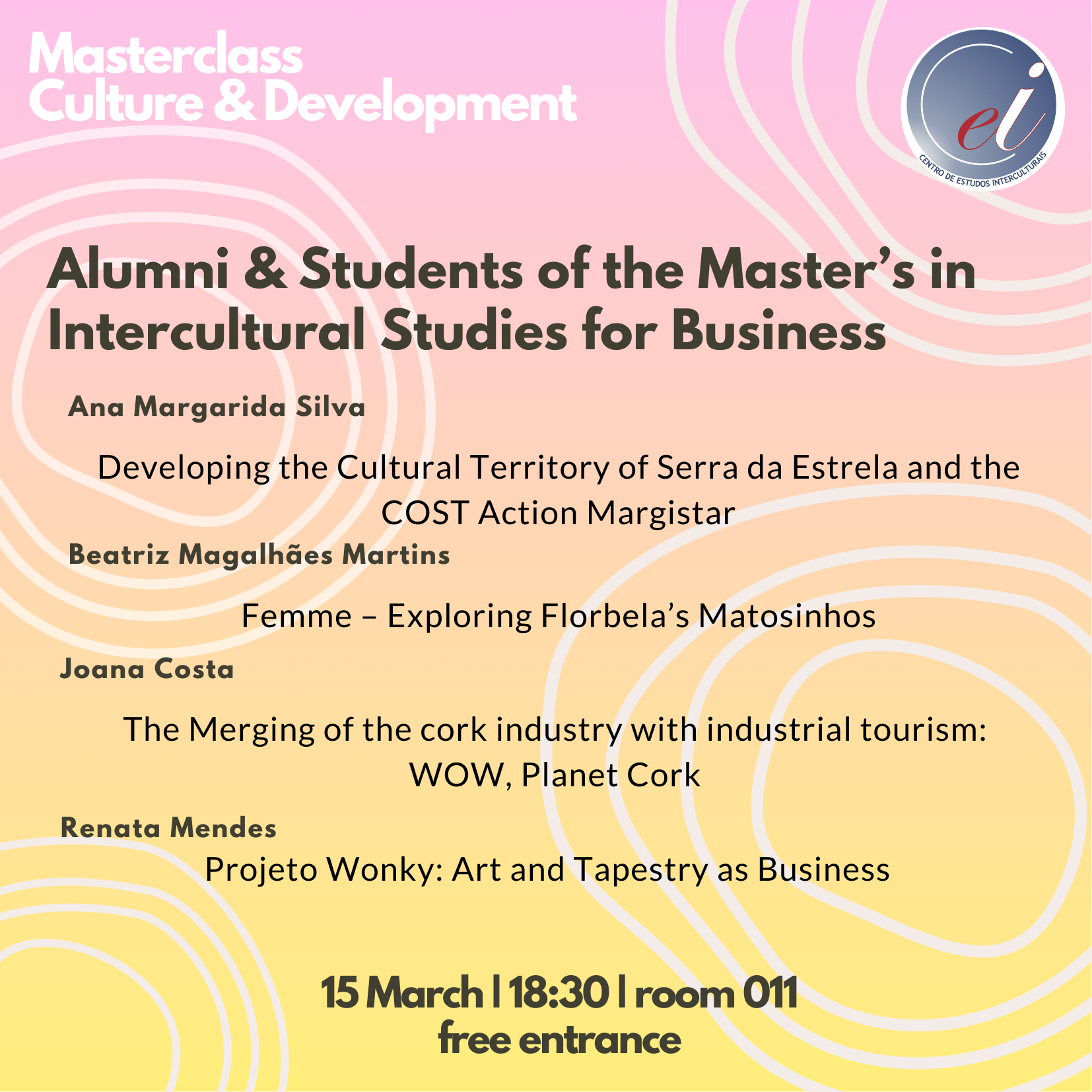 O Centro de Estudos Interculturais convida a comunidade académica a participar na Masterclass “Culture & Development – Alumni & Students of the Master’s in Intercultural Studies for Business”.