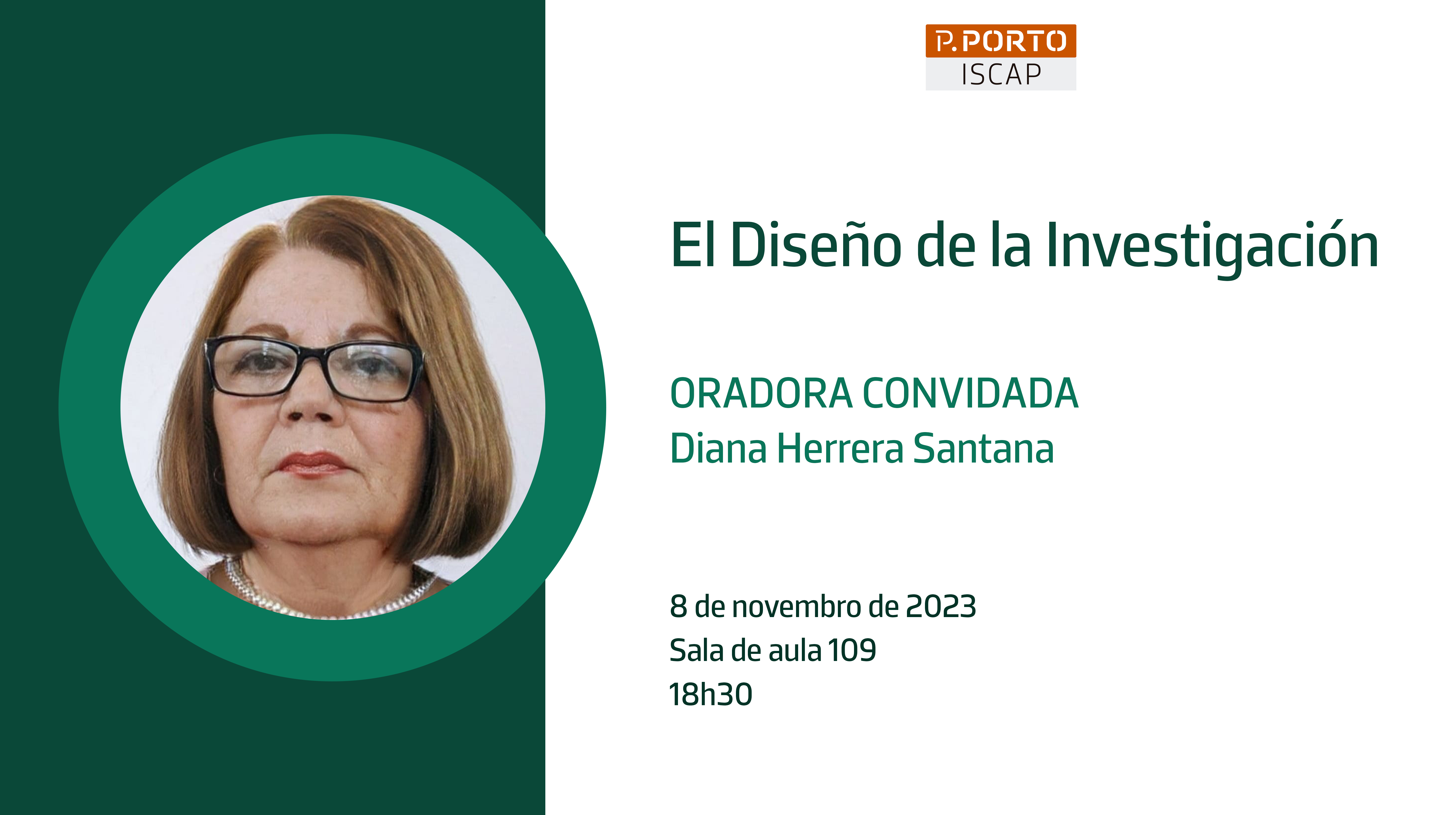 No próximo dia 8 de novembro de 2023, pelas 18h30, na sala 109, irá decorrer uma masterclass subordinada ao tema "El Diseño de la Investigación" inserida no âmbito do Mestrado em Assessoria de Administração. Esta sessão conta com a presença da oradora convidada Diana Herrera Santana.