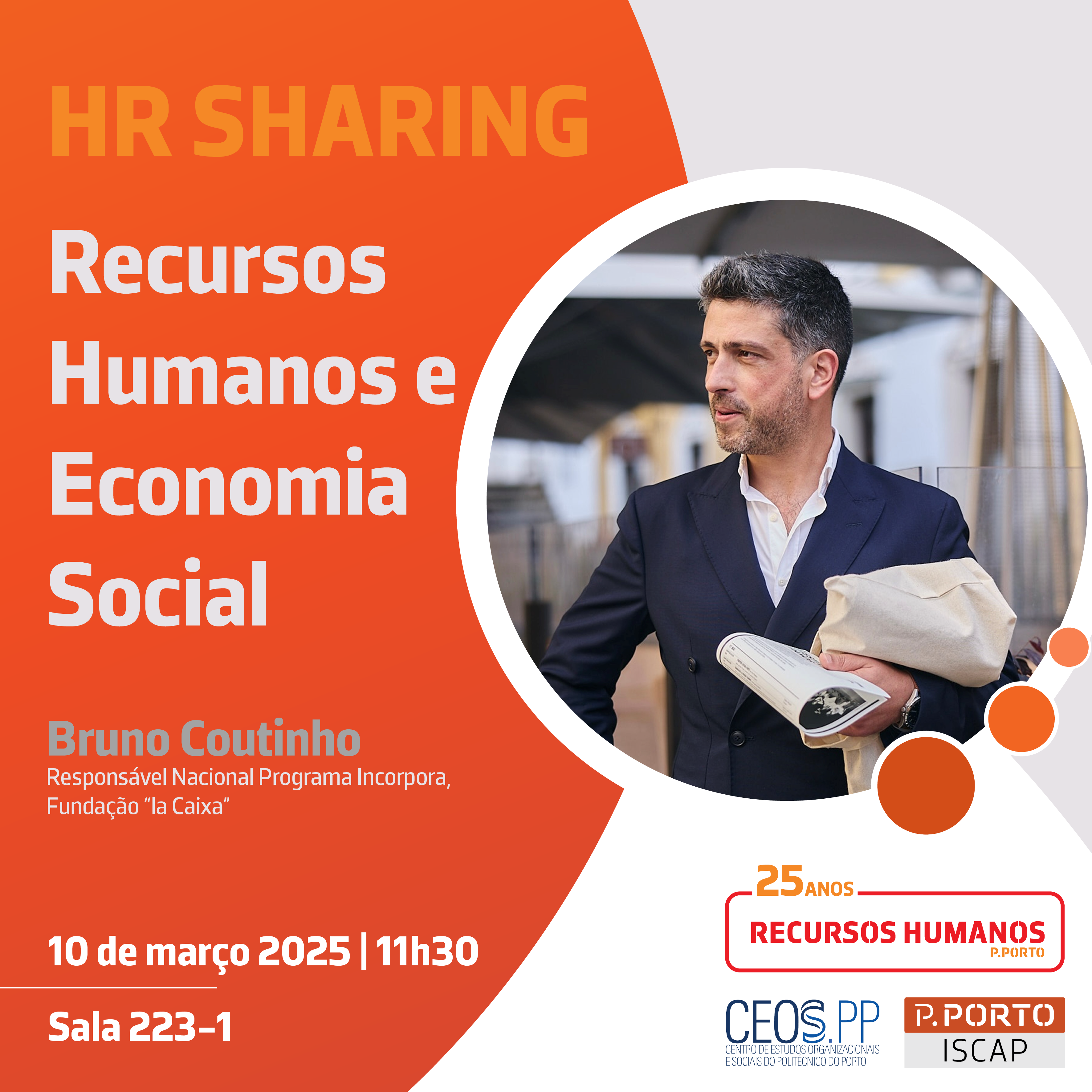 No próximo dia 10 de março de 2025, pelas 11h30, decorrerá na sala 223-1 o seminário "Recursos Humanos e Economia Social", dinamizado pela parceria da Licenciatura em Recursos Humanos, Mestrado em Gestão e Desenvolvimento de Recursos Humanos e Grupo de Recursos Humanos do CEOS - Centros de Estudos Organizacionais e Sociais do Politécnico do Porto.
