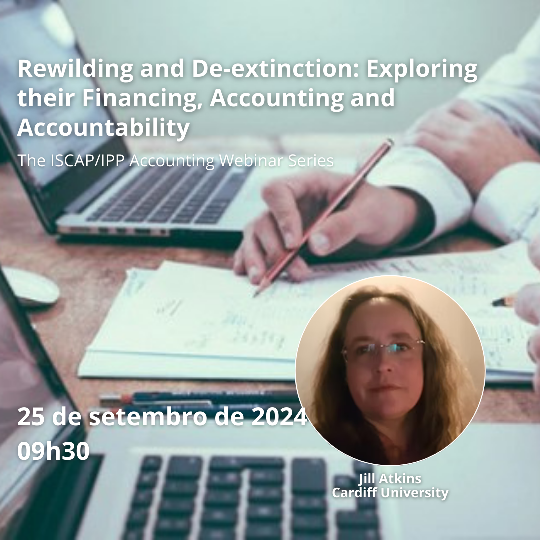 Tema: Rewilding and De-extinction: Exploring their Financing, Accounting and Accountability. Oradora convidada: Professora Jill Atkins (Cardiff University).