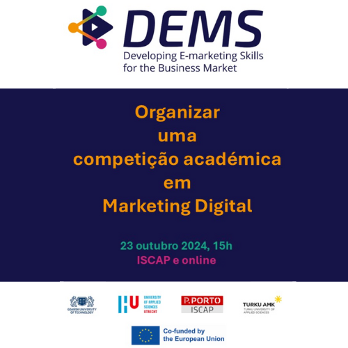 O projeto DEMS – Digital E-Marketing Skills for the Business Marketing – tem como propósito fundamental o desenvolvimento de competências em marketing digital, tendo recentemente concluído a sua terceira fase, na qual foi elaborada uma competição académica dedicada a esta área. Esta iniciativa foi concebida com o intuito de promover a sensibilização e a formação de estudantes e profissionais sobre as mais recentes estratégias e ferramentas que caracterizam o marketing na era digital.