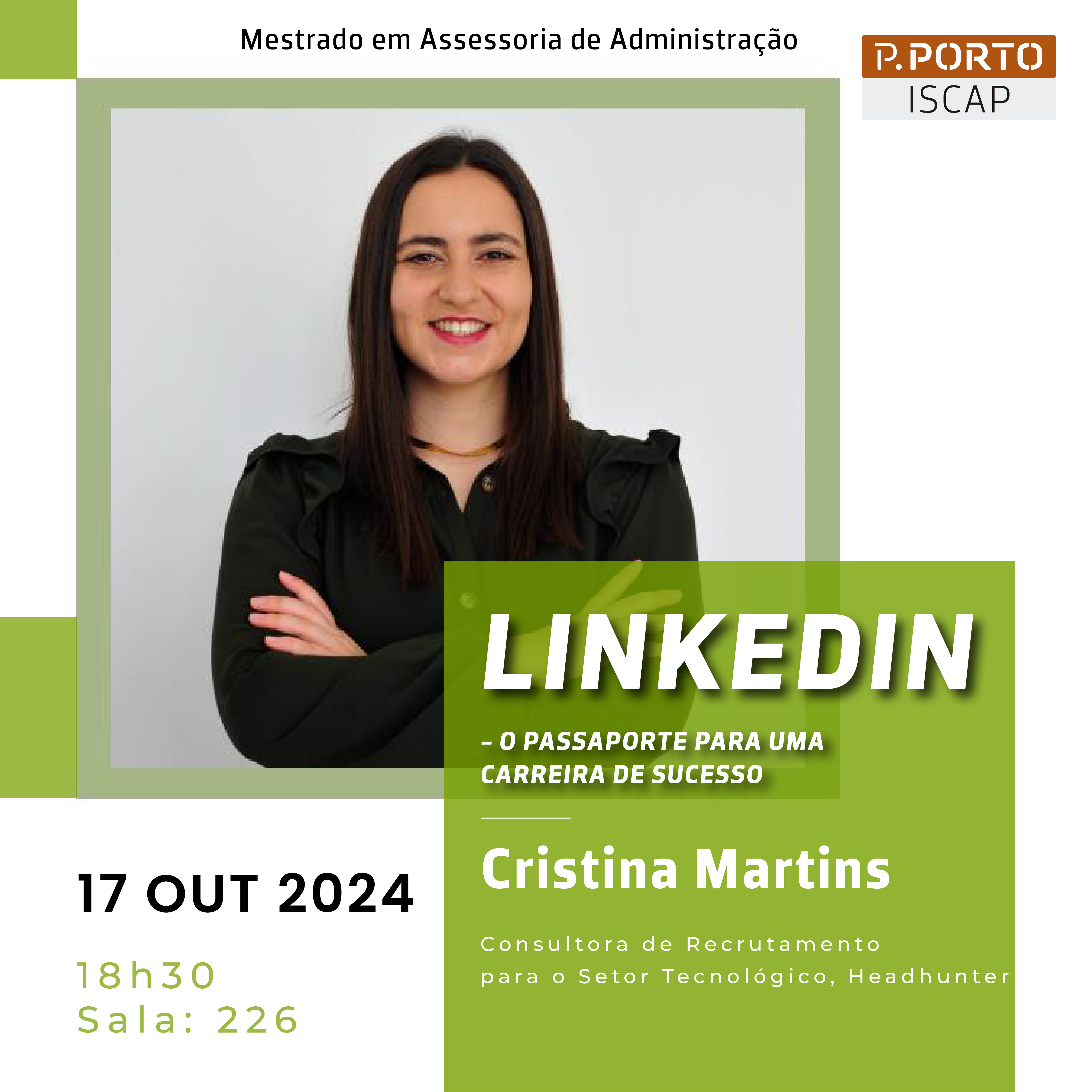 No dia 17 de outubro às 18h30 vaI decorrer um seminário intitulado: "LinkedIn: o passaporte para uma carreira de sucesso", na sala 226 e em formato online.