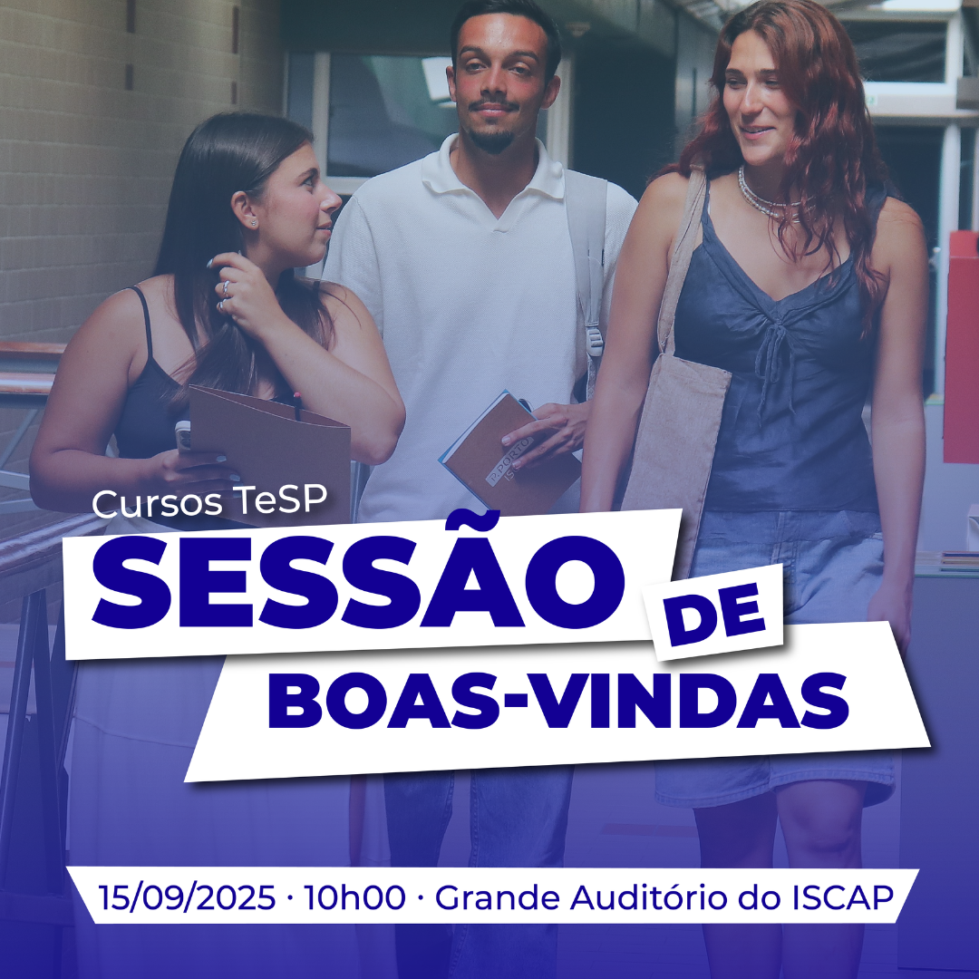 No próximo dia 15 de setembro de 2025, pelas 10h00, realizar-se-á a Sessão de Boas-Vindas para os estudantes dos Cursos TeSP 2025/2026 no Grande Auditório do ISCAP.