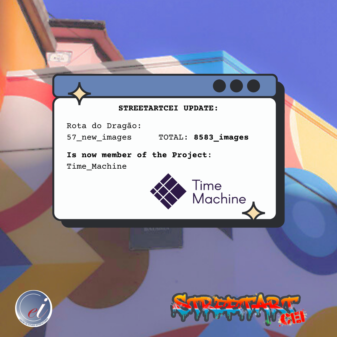 Simultaneamente, o StreetArtCEI passa a integrar desde hoje o projeto europeu The Time Machine: https://www.timemachine.eu/ltm-projects/streetartcei/