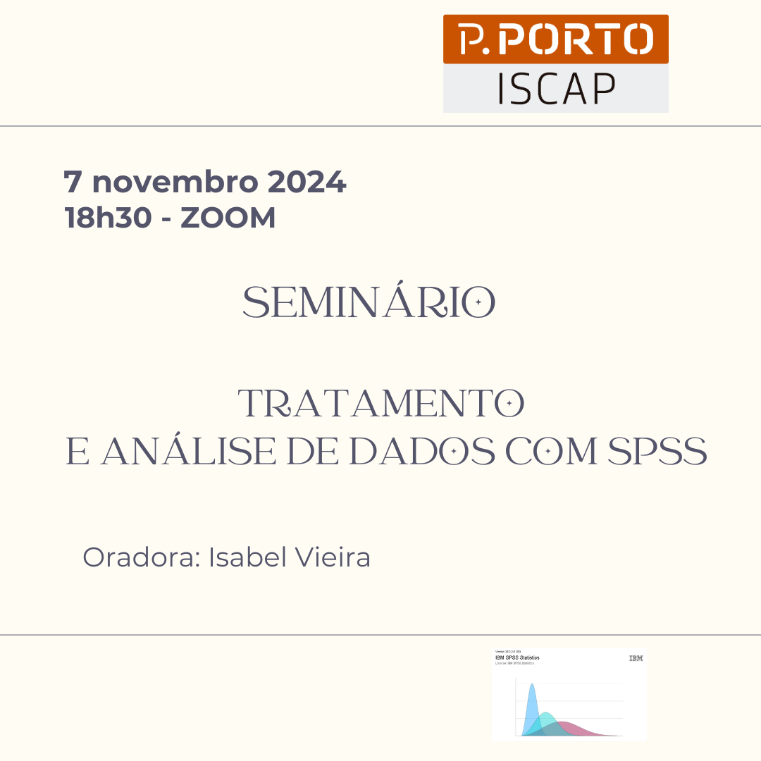 No próximo dia 7 de novembro de 2024, pelas 18h30, decorrerá um Seminário sobre Tratamento e análise de dados com SPSS, no ISCAP. O evento acontece no âmbito do Mestrado de Assessoria em Comunicação Digital e será dinamizado pelo Professora Doutora Isabel Vieira.
