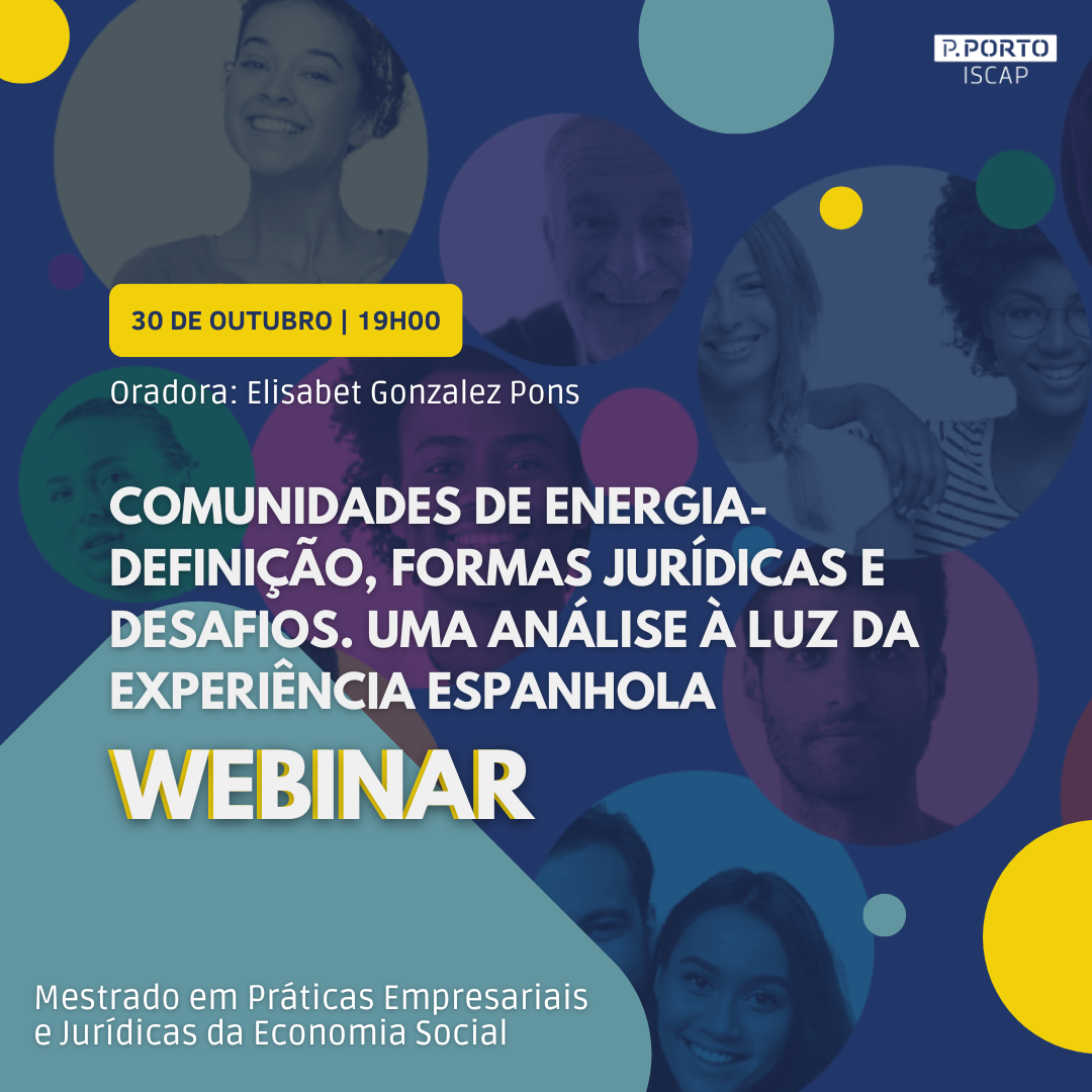No dia 30 de outubro de 2024, às 19h00, vai decorrer através da plataforma Zoom um Webinar com o tema: "Comunidades de Energia- Definição, formas jurídicas e desafios. Uma análise à luz da experiência espanhola".