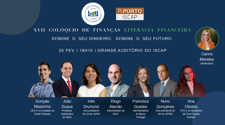 O XVII Colóquio de Finanças Empresariais realizar-se-á no dia 25 de fevereiro de 2026, às 18h15, no Grande Auditório do ISCAP.